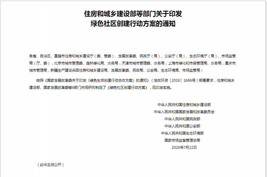 (一)建立工作机制。绿色社区创建行动由住房和城乡建设部牵头,国家发展改革委、民政部、公安部、生态环境部、市场监管总局等单位参与。全国层面加强部门协调配合,及时沟通相关工作情况。各地有关部门要把绿色社区创建工作摆上重要议事日程,在当地人民政府的统一领导下,建立部门协作机制,形成工作合力,共同破解难题,统筹推进绿色社区创建。